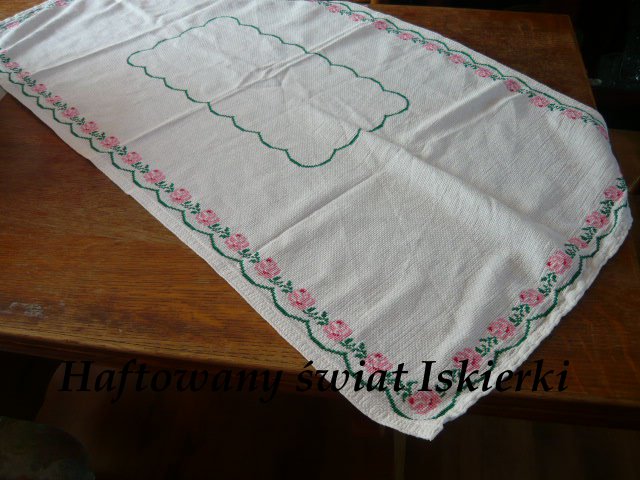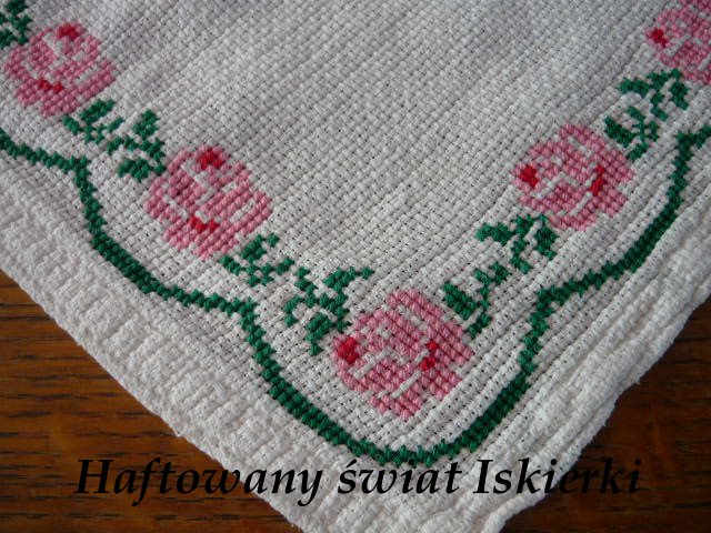 Właściwie nigdy go nie dokończyłam, bo w zamierzeniu było wyhaftowanie różyczek także na jego środku. Niestety, na to nie starczyło mi juz ani czasu ani cierpliwości.