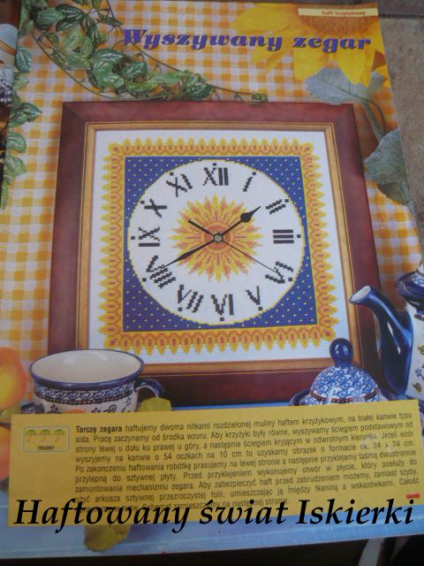 Zegar wyszedł pięknie. Dostał niebieską ramkę, bo idealnie pasował do niebieskiego wystroju kuchni teściowej.