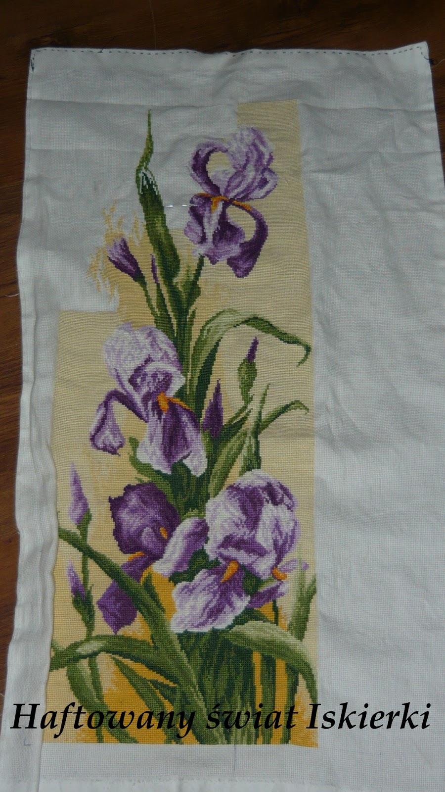 Ufff, w moich irysach dotarłam do drugiego „brzegu” niemal bezkresnej żółci. Od wczoraj widać jak duży jest ten haft, bo udało mi się zrobić część górnego brzegu obrazka i jestem z tego powodu ogromnie szczęśliwa.