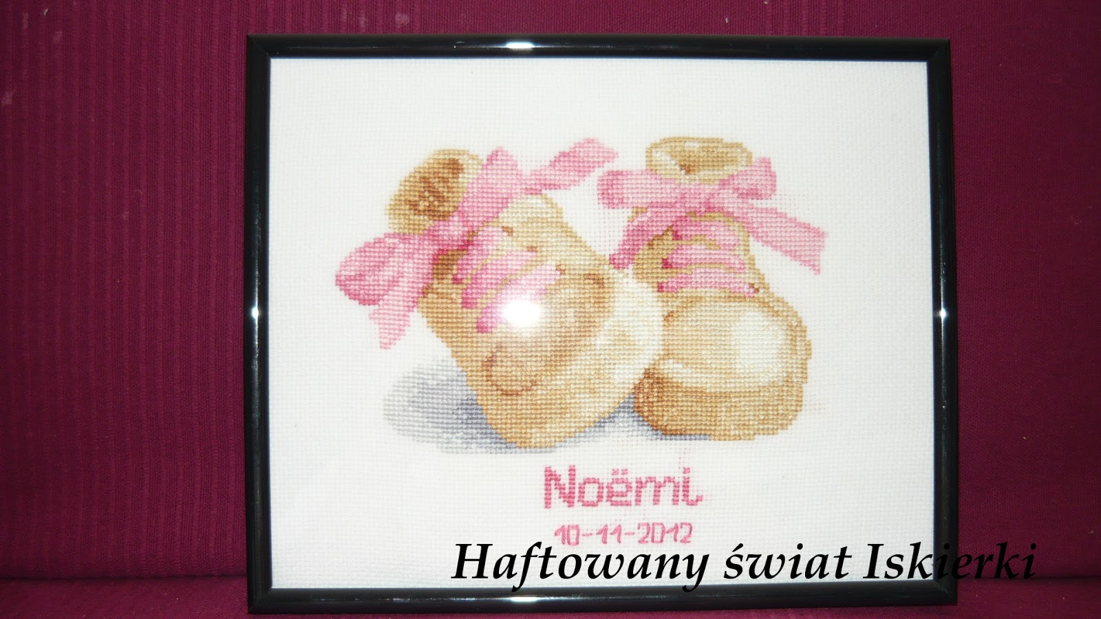 Dalej – moja metryczka dla dziewczynki wreszcie doczekała się prania, prasowania i ramki. Byliśmy też w końcu w odwiedzinach u małej Noemi: