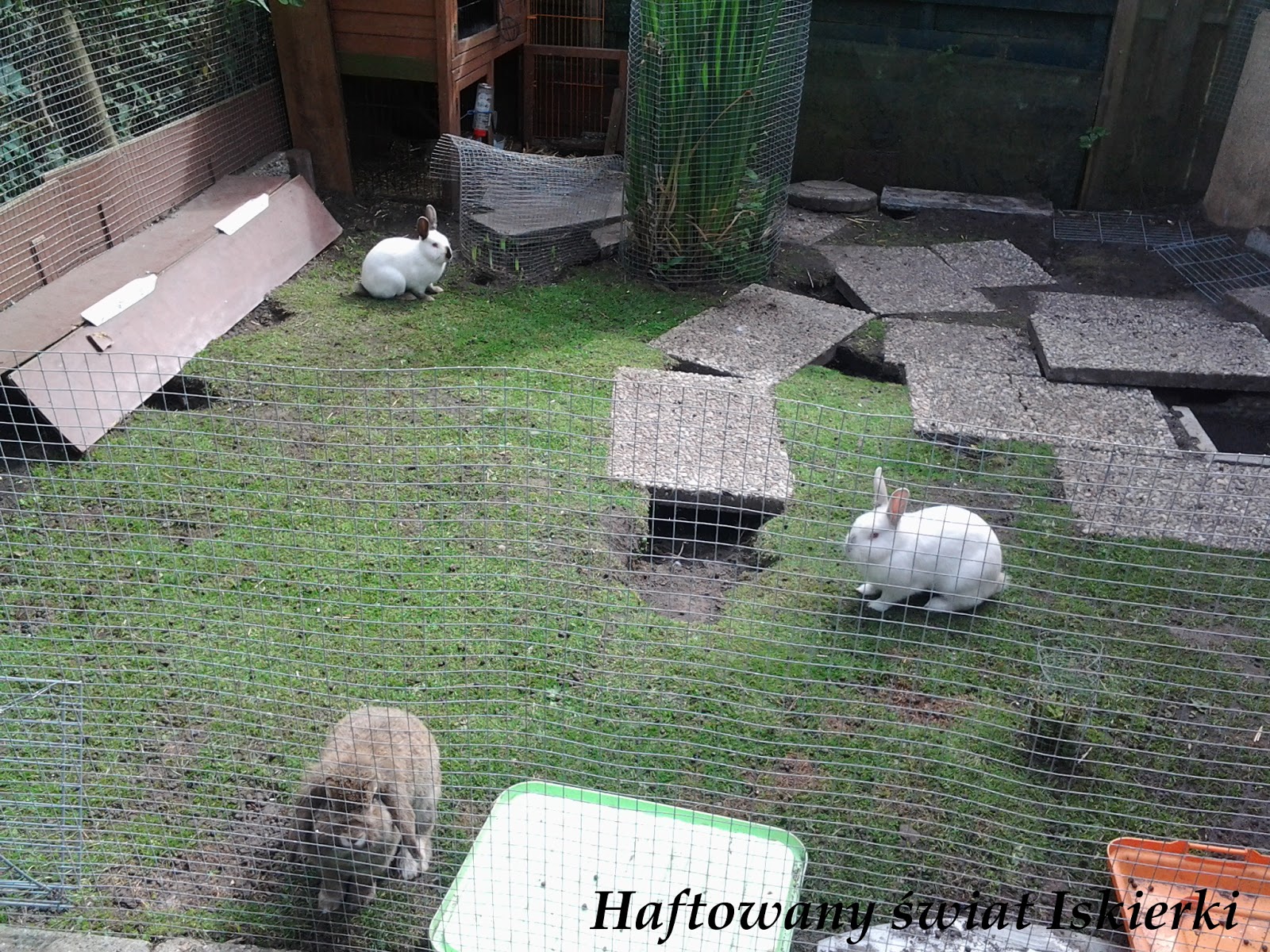 1. Pieski słodkie, ale króliczki mnie zauroczyły! Mają fantastyczne mieszkanka i cudowne wybiegi! A nie podkopują się? Gdy nasze miniaturki są na dzień wypuszczane do woliery, to zawsze w rogu robią ogromną norę!