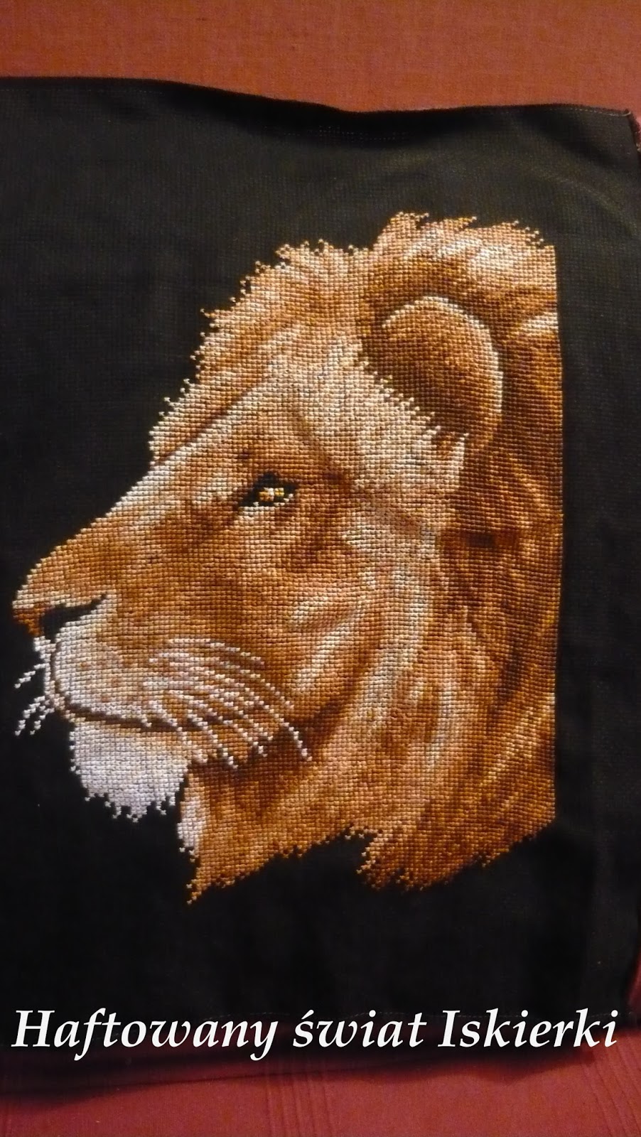 Wspaniały ten lew, cieszę się, że wygrałaś z czarną kanwą. Pamiętam, że początek był trudny, ale było warto.