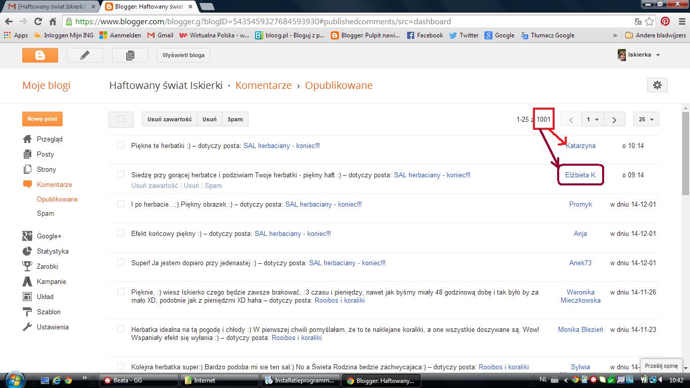 O godzinie 10:15 było już 1001 komentarzy. Z tego wynika, że 1001 komentarz pozostawiła Katarzyna, a 1000, zwycieski komentarz pochodzi od kogos, kto napisał wczesniej, czyli…..