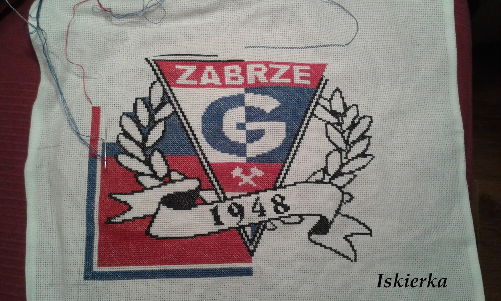 W poprzednim poście obiecałam się pochwalić, nad czym obecnie pracuję. Otóż od połowy kwietnia haftuję prezent dla naszego wspólnego kolegi, kibica Górnika Zabrze…