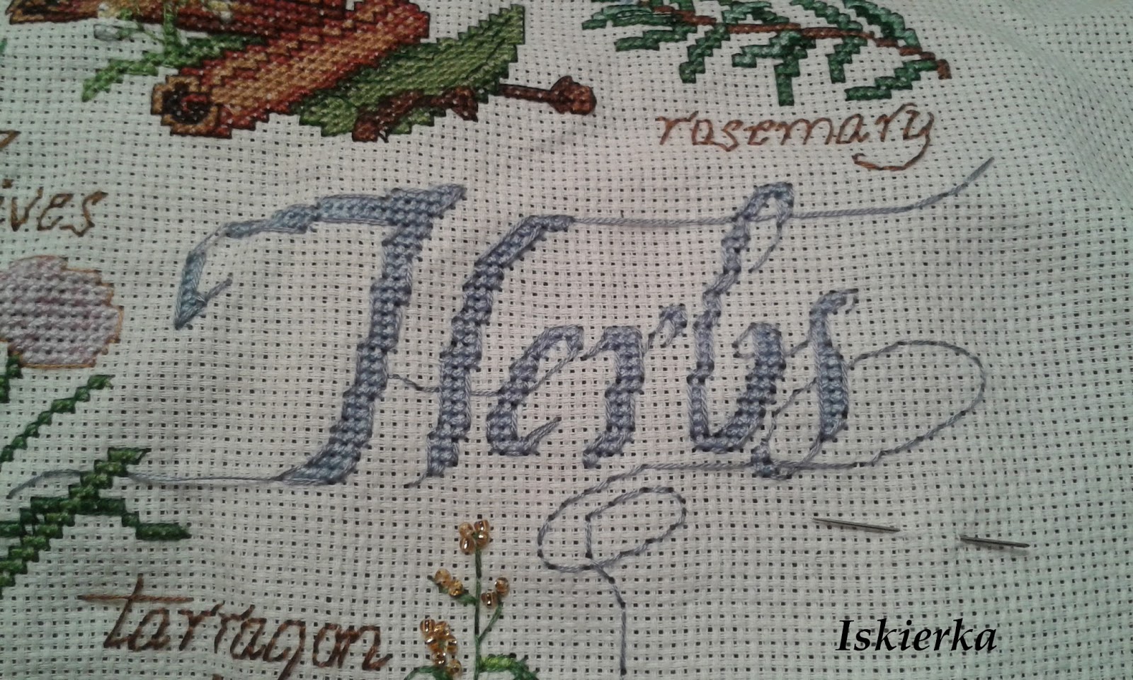 Napis dokończyłam w niedzielę przy okazji haftując też wanilię i imbir