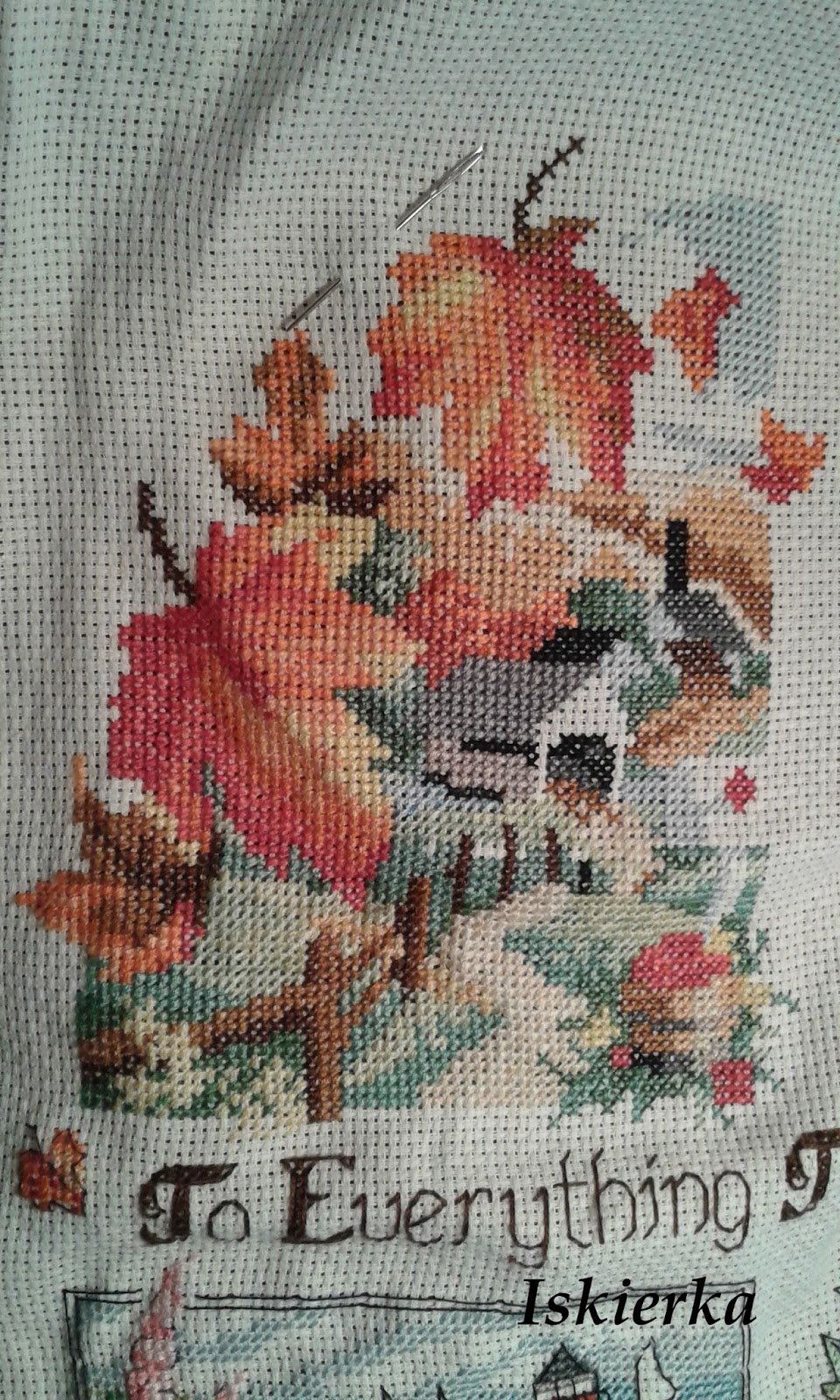 Skończyłam Jesień. To trzeci obrazek haftowany w tym SAL-u i muszę przyznać że najlepiej i najszybciej mi się go haftowało. Nie wiem czy to sprawa kolorów czy też mniejsza ilość pół krzyżyków.
