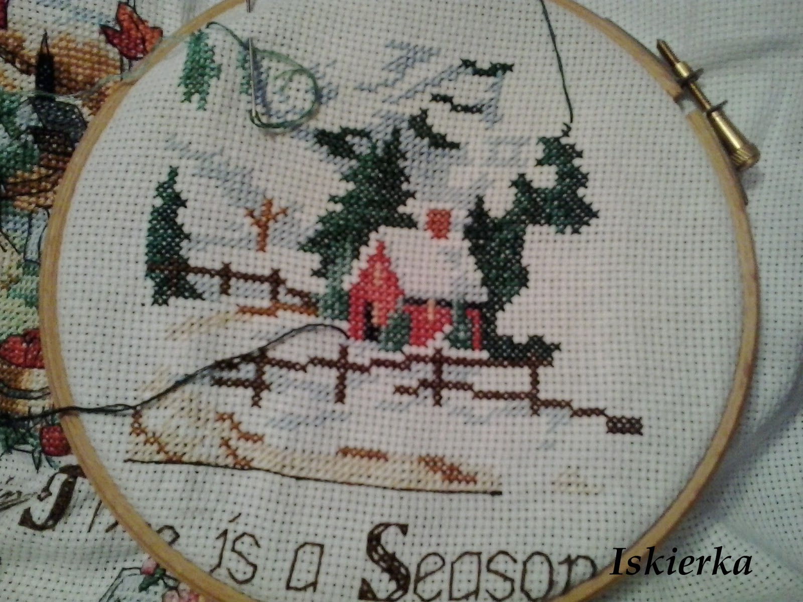 Ja skończyłam swoją Zimę dopiero co, grubo spóźniona. Niestety tak mi się w tym roku ułożyło, że na kilka dni przed Wigilią miałam bardzo mało czasu na krzyżyki i obrazek na którego wyhaftowanie przeznaczyłam 2 dni, faktycznie haftowałam 5 dni…