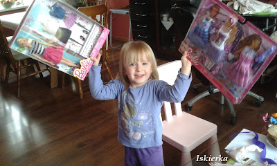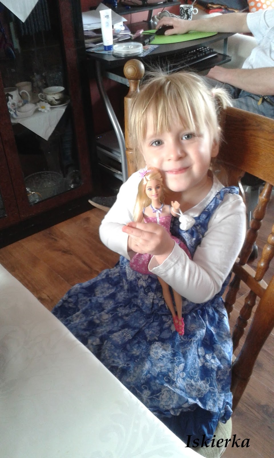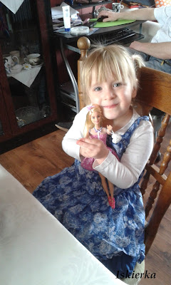 Może jutro coś przybędzie, bo dziś jakoś czasu nie było na hafcik. Bo to i noc o godzinę krótsza i śniadanie/obiad w wydaniu bardziej świątecznym i wyjazd do kościoła, no i wreszcie dziecko, któremu „zajączek” przyniósł upragnioną Barbie z ubrankami na zmianę… Radości i zabawy nie było końca, a mama musiała brać w tym czynny udział 😉