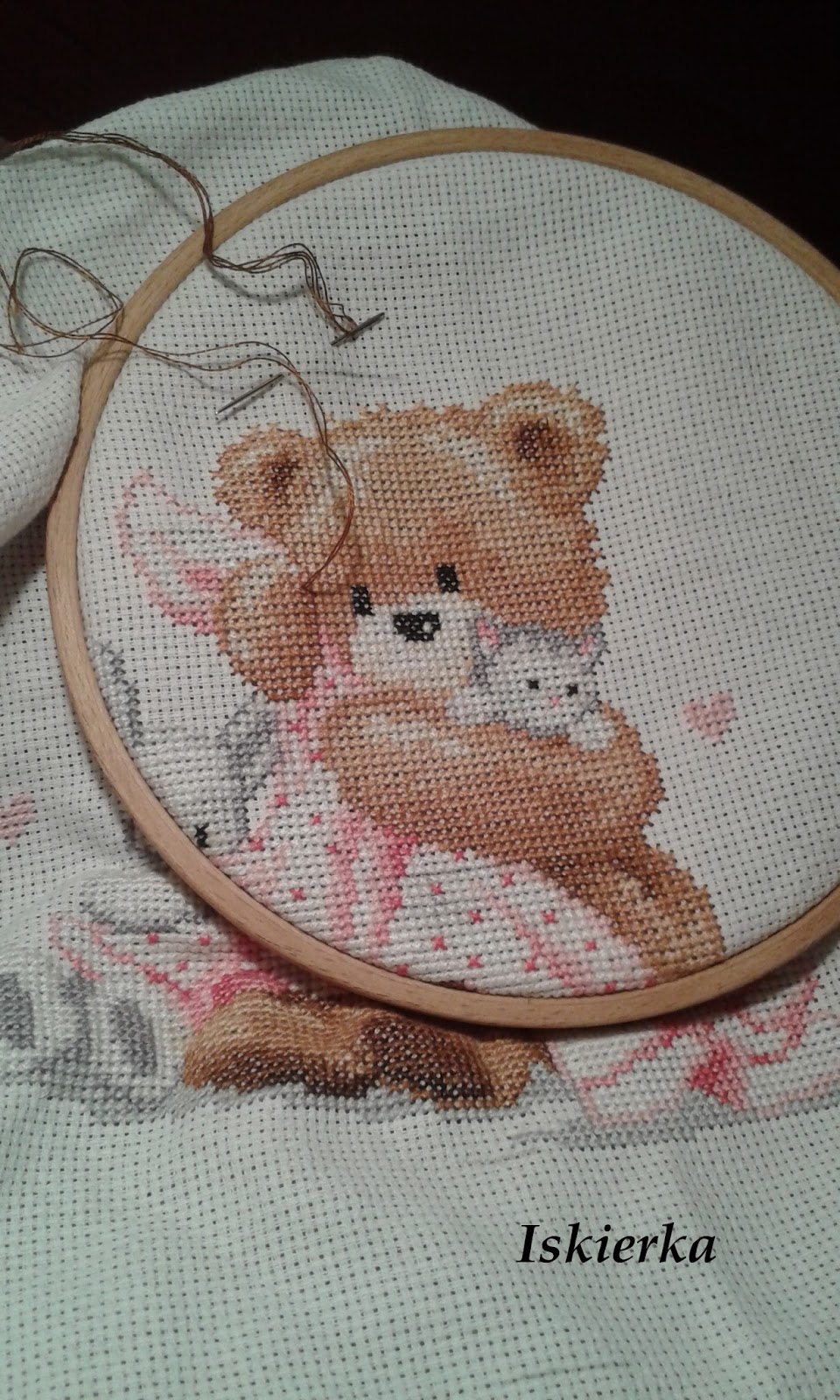Wciąż jednak brakuje konturów. Troszeczkę dziś podziabałam kontury na misiowej głowie, ale nie ma co pokazywać.