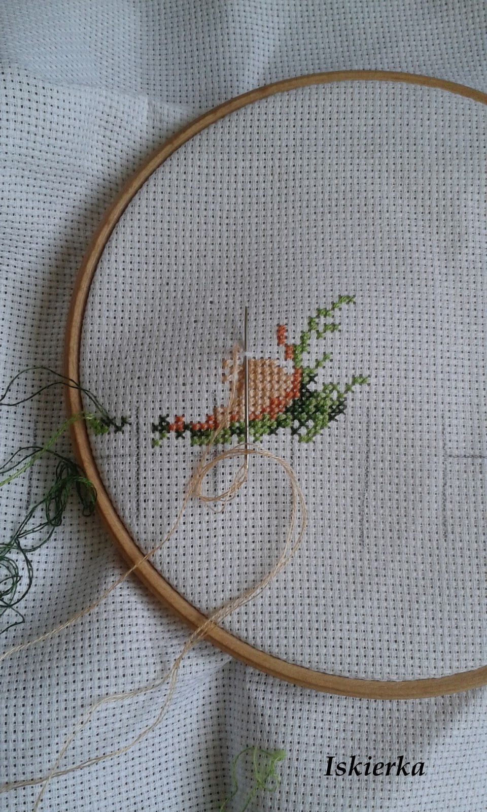 Przed wyjazdem haftowałam metryczkę. Wyjeżdżając zostawiłam ją w takim stanie: