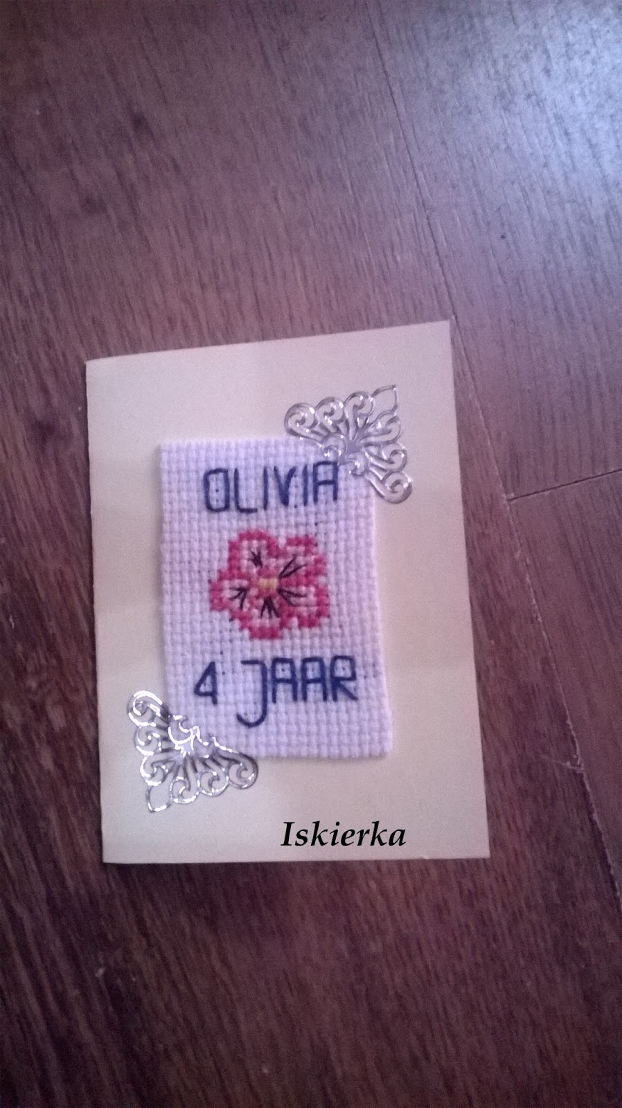 W środku przykleiłam (tak, tak, już klejem 😉 )karteczki z wierszykiem. Treść wierszyka mówi o tym, że Olivia już wkrótce kończy 4 latka, że w przedszkolu super się bawiła, ale już jest szczęśliwa że idzie do szkoły (to tak w wolnym przekładzie)
