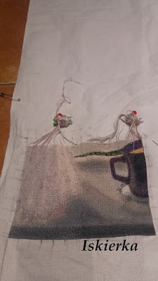 Ostatnie krzyżyki na tej kanwie postawiłam w grudniu 2016 roku. Gdy odkładałam kanwę miałam wyhaftowane dwie (i trochę) strony schematu: