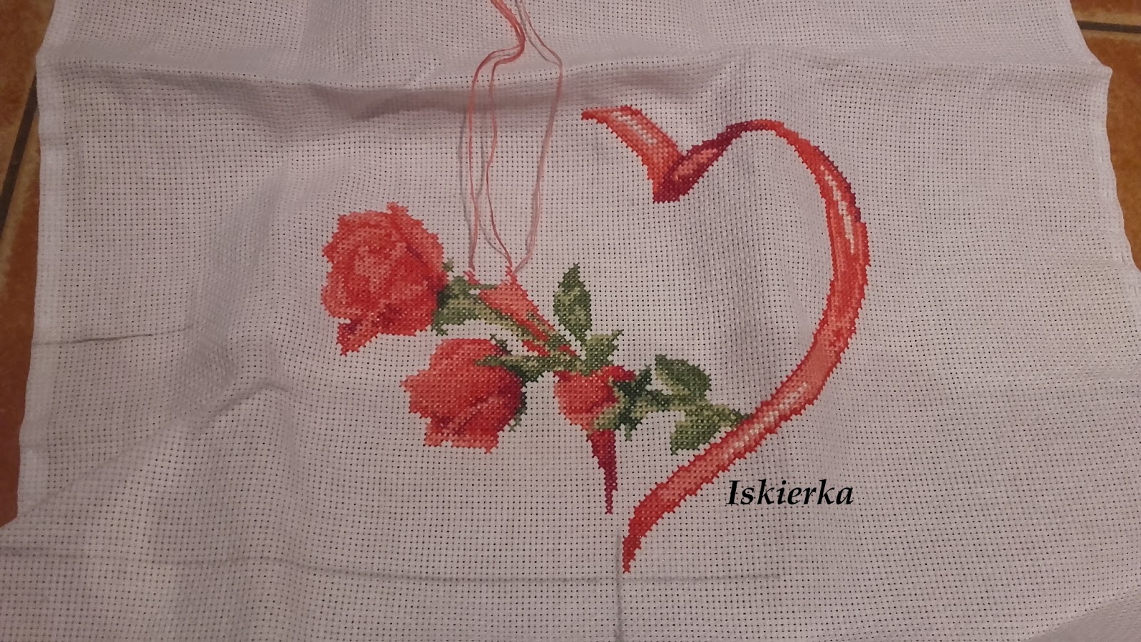 Najpierw dokończyłam serduszko i okonturowałam róże: