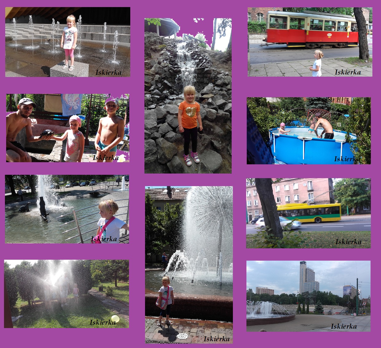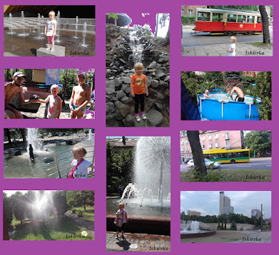 Było upalnie i…. mokro, bo oprócz basenu na ogródku w Świętochłowicach i lania się wodą na ogródku w Tychach to jeszcze pozwiedzaliśmy wszystkie możliwe fontanny.
