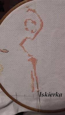 Postanowiłam iść za ciosem i wyhaftować wszystkie dziewczynki, dlatego niemal od razu zaczęłam kolejną. Jednak przez kolejny tydzień udało mi się wyhaftować trochę więcej niż połowę następnej tancerki: