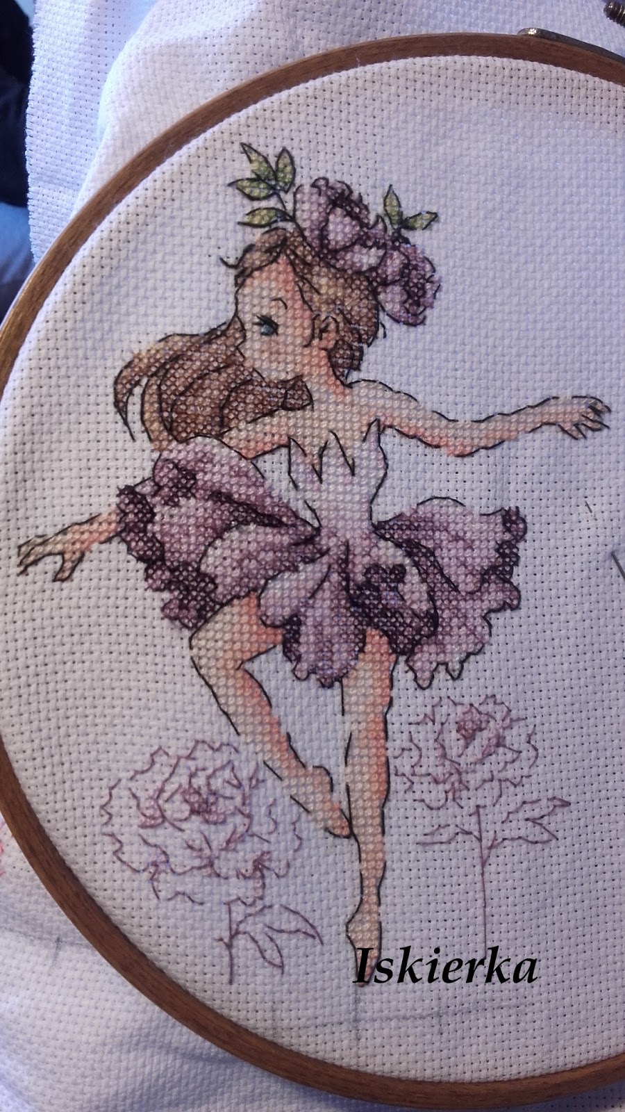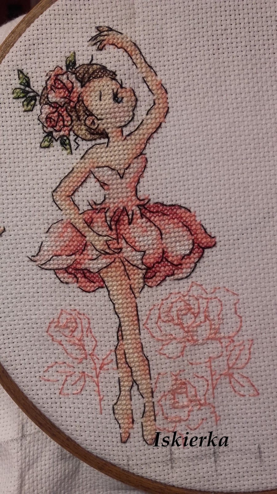 Postanowiłam iść za ciosem i wyhaftować wszystkie dziewczynki, dlatego niemal od razu zaczęłam kolejną. Jednak przez kolejny tydzień udało mi się wyhaftować trochę więcej niż połowę następnej tancerki:
