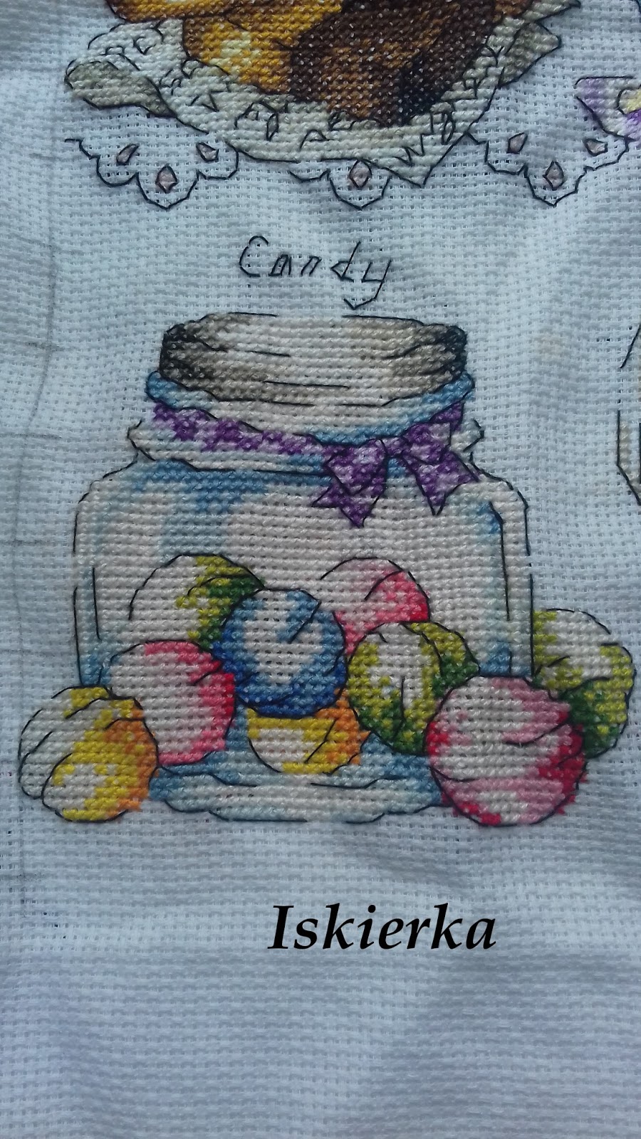 Ja najczęściej przez parę dni dochodzę do normalnego trybu po powrocie z kraju. Mój motyw dopiero teraz gotowy. Na początku lutego byłam pewna,że zrobię cały środkowy rządek. Serduszko powstało w dwa dni , potem przy środkowym motywie zabrakło mi koloru więc odłożyłam haft i zapomniałam dopiero Twój mail mnie przeraził,że to już! Szybko zabrałam się za słoiczek i w połowie okazało się,że pomyliłam jeden rządek 😦 90% musiałam wypruć ale wczoraj wieczorkiem skończyłam 🙂