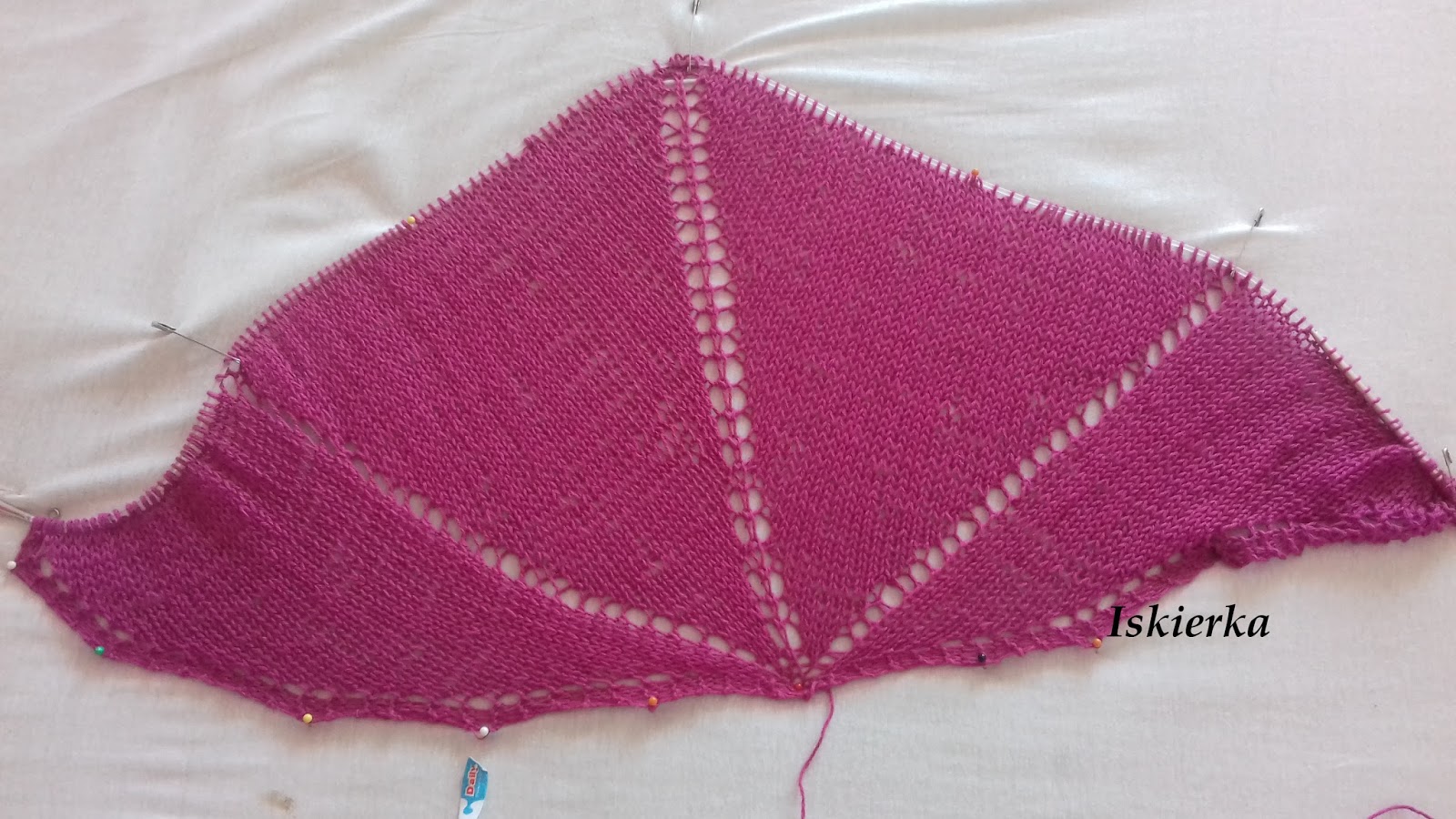 Całe 3 motki. Wełna przeleżała ponad pól roku, a ja wreszcie znalazłam czas, by przestudiować filmiki Iwony i zacząć chustę…
