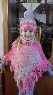 Wyszło Ci fantastycznie! Super kolorki 🙂 Nie mogę się napatrzeć. Nie dziwie się pięknej modeleczce że już nosi czapunie i już by chciała ubrać ponczo.