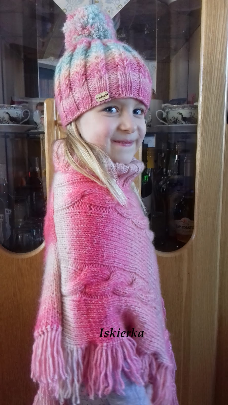 Wyszło Ci fantastycznie! Super kolorki 🙂 Nie mogę się napatrzeć. Nie dziwie się pięknej modeleczce że już nosi czapunie i już by chciała ubrać ponczo.