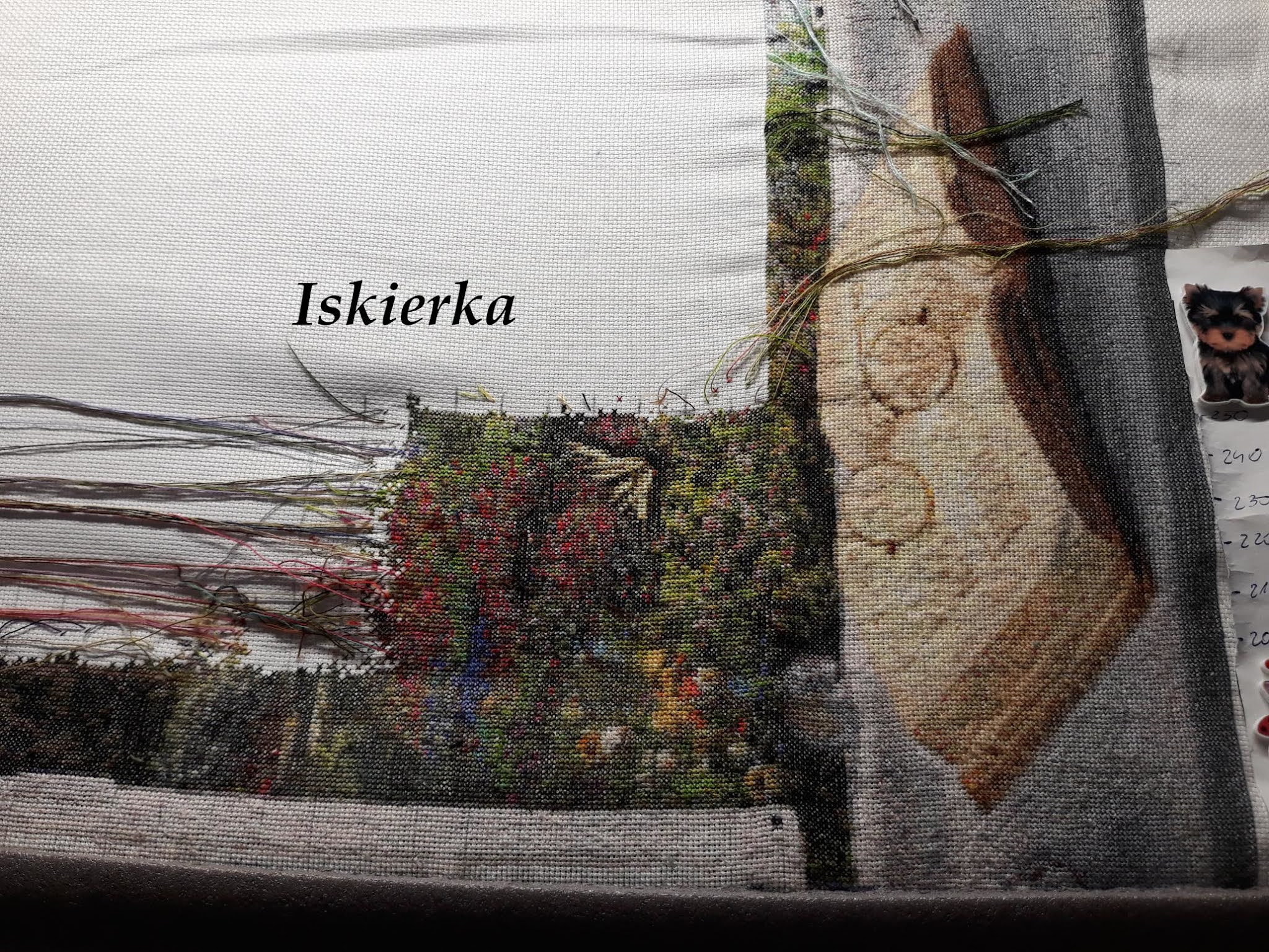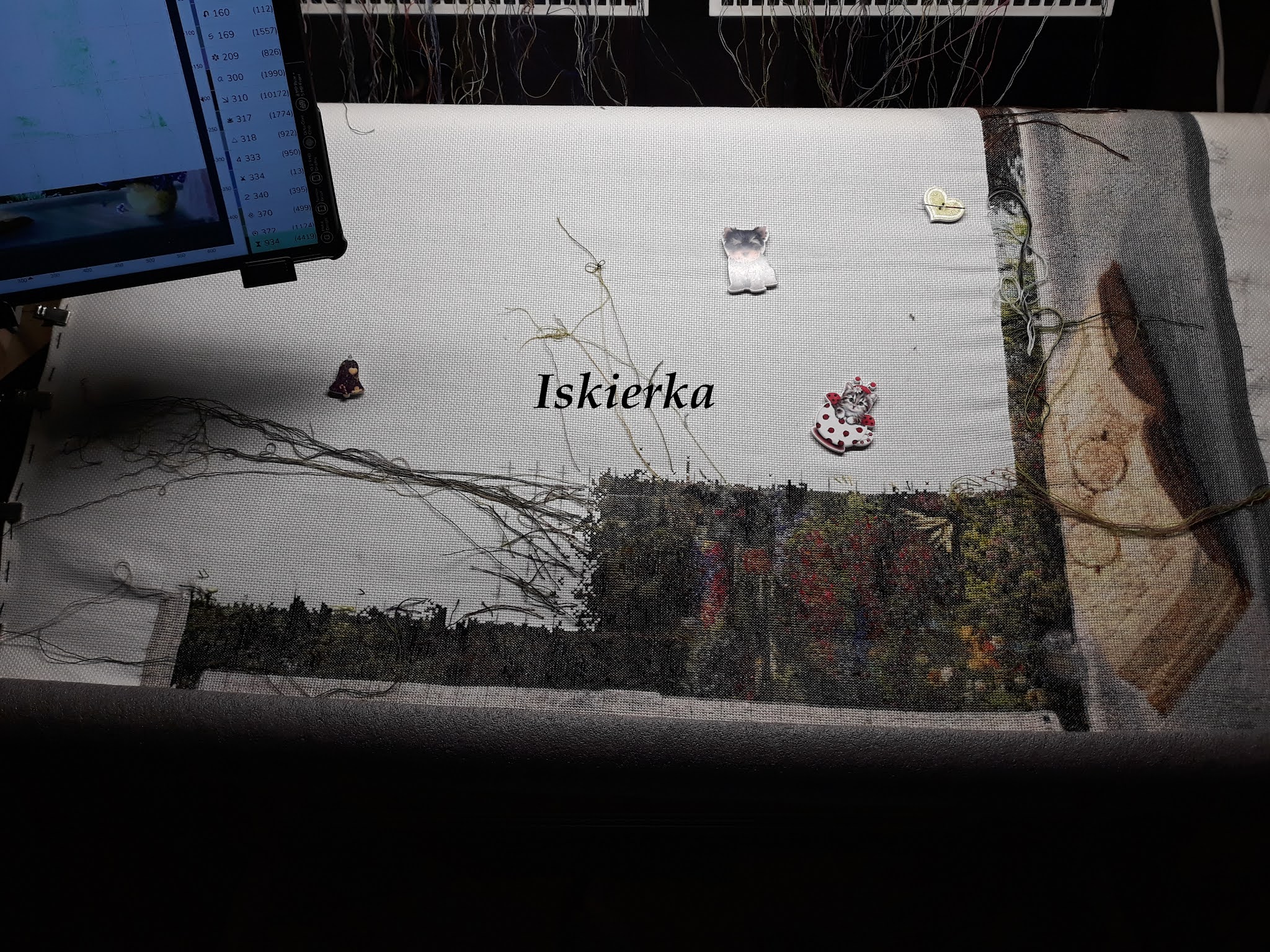 Od ostatniej soboty przybyło zdecydowanie więcej tego tła na końskimi łbami, ale nie mam aktualnego zdjęcia. Teraz znów będzie 3 tygodnie przerwy w tym hafcie, bo kolejne zajęcia dopiero 30 października. Mam nadzieję, że jeszcze 2 takie soboty i hafcik będzie można odhaczyć 😉