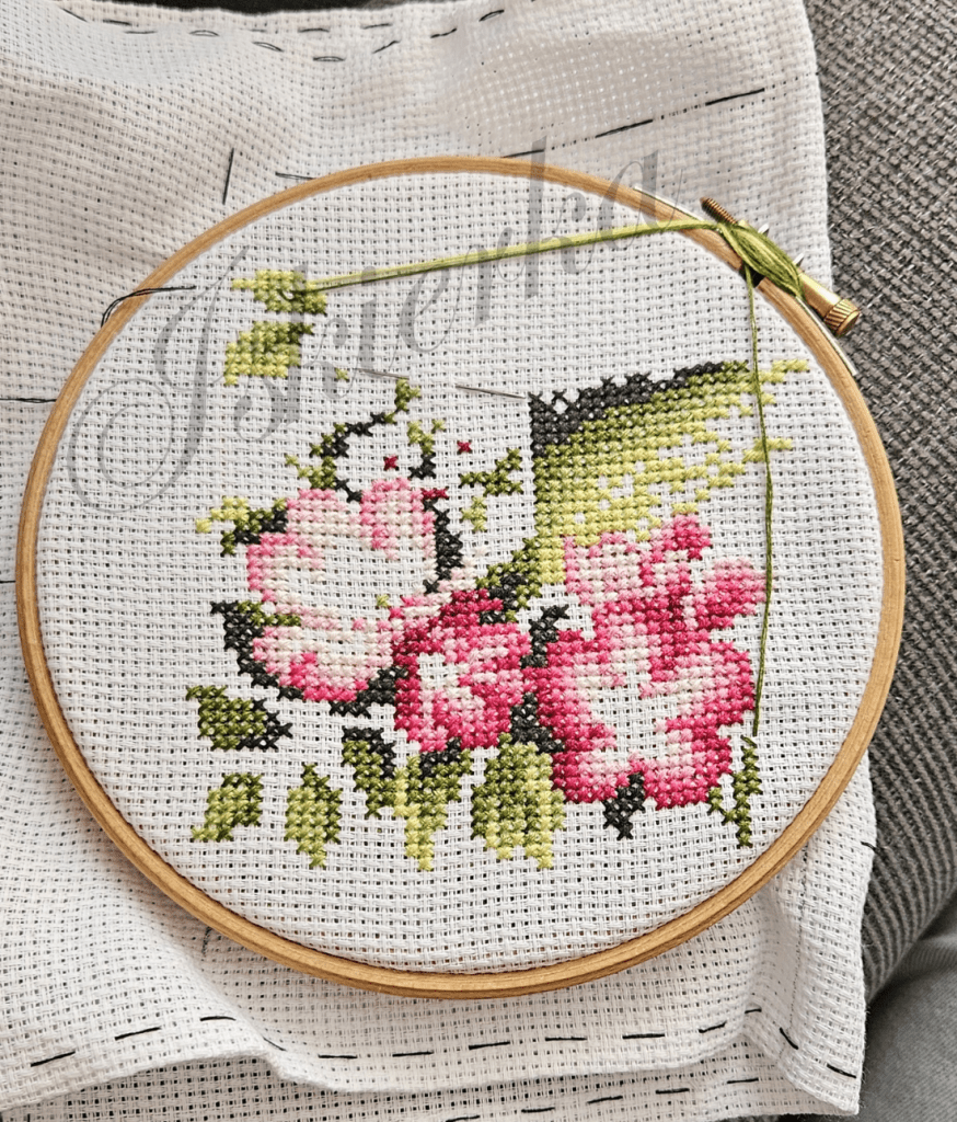 Jak widać na powyższym obrazku haftowałam w rękach, czego wręcz nienawidzę… Wiem, że są hafciarki, które w tym sposób haftują wszystko – największe i najmniejsze projekty – ja nie umiem…