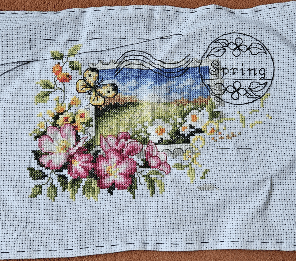 Materiał był wyliczony niemal co do krzyżyka i nie było jak go zabezpieczyć żeby się nie snuł w czasie pracy. Ani nic przyszyć, ani tamborka założyć. Tu nitka za luźno, tam za mocno…