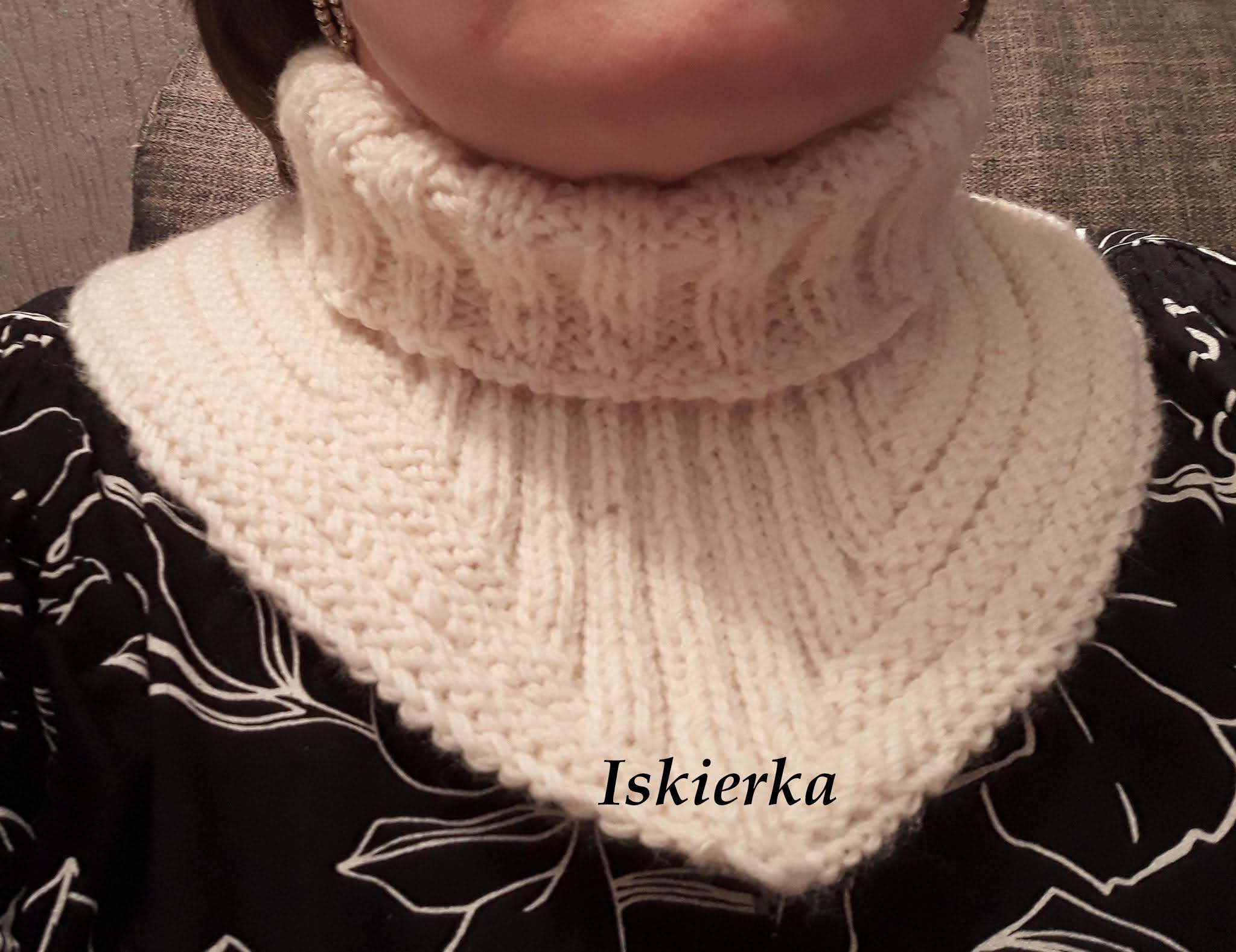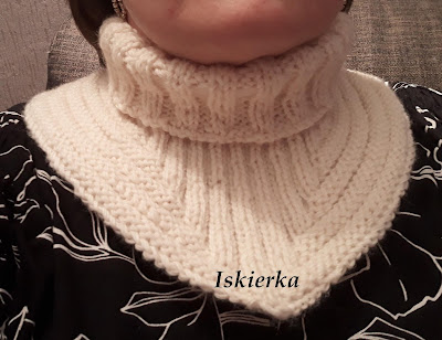 Mama poprosiła jeszcze o jakiś komin/otulacz na szyję. Wymyśliłam że zrobię jej coś innego niż zrobiłam do tej pory i na YT znalazłam dokładny tutorial na piękny Otulacz z trójkątnym klinem:Oczywiście moja mama nie byłaby sobą, gdyby do robótki nie wtrąciła swoje 3 grosze. Nie miałam zamiaru się z nią kłócić, więc zrobiłam dokładnie tak jak sobie życzyła i golf w tym otulaczu jest o połowę krótszy niż być powinien. Klient nasz pan.