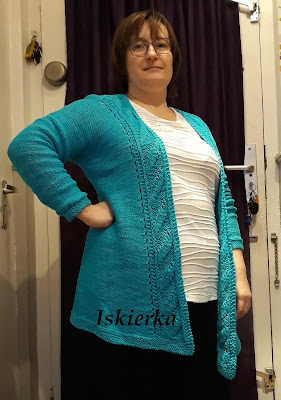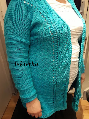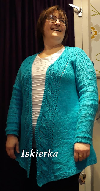 Dumna jestem z siebie, choć muszę przyznać, że zdaję sobie sprawę z niedoskonałości mojego arcydzieła. Niejeden błąd zrobiłam w schemacie, a do tego rękawy wyszły odrobinę za ciasne. Przynajmniej gdy pod spód nałożyłam bluzkę z długim, dość luźnym rękawem…