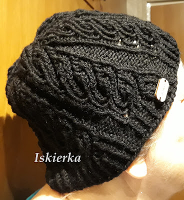 Czarna była z pojedynczej nitki Drops Karisma wg wzoru Winter Twist ze strony Dropsa: