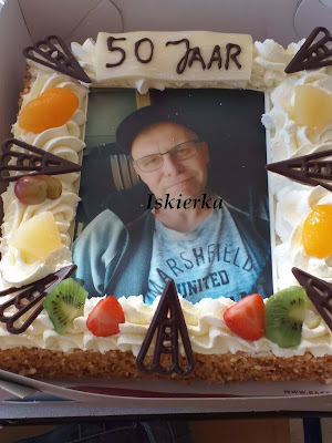 A 30 maja świętowaliśmy 50 urodziny mojego męża:Tym razem chwalę się tortem, jaki mój mąż otrzymał w pracy, od szefa. Ja zrobiłam dla nas taki sam jak dla syna na urodziny – jabłkowo-herbatnikowy, ale zdjęć brak.