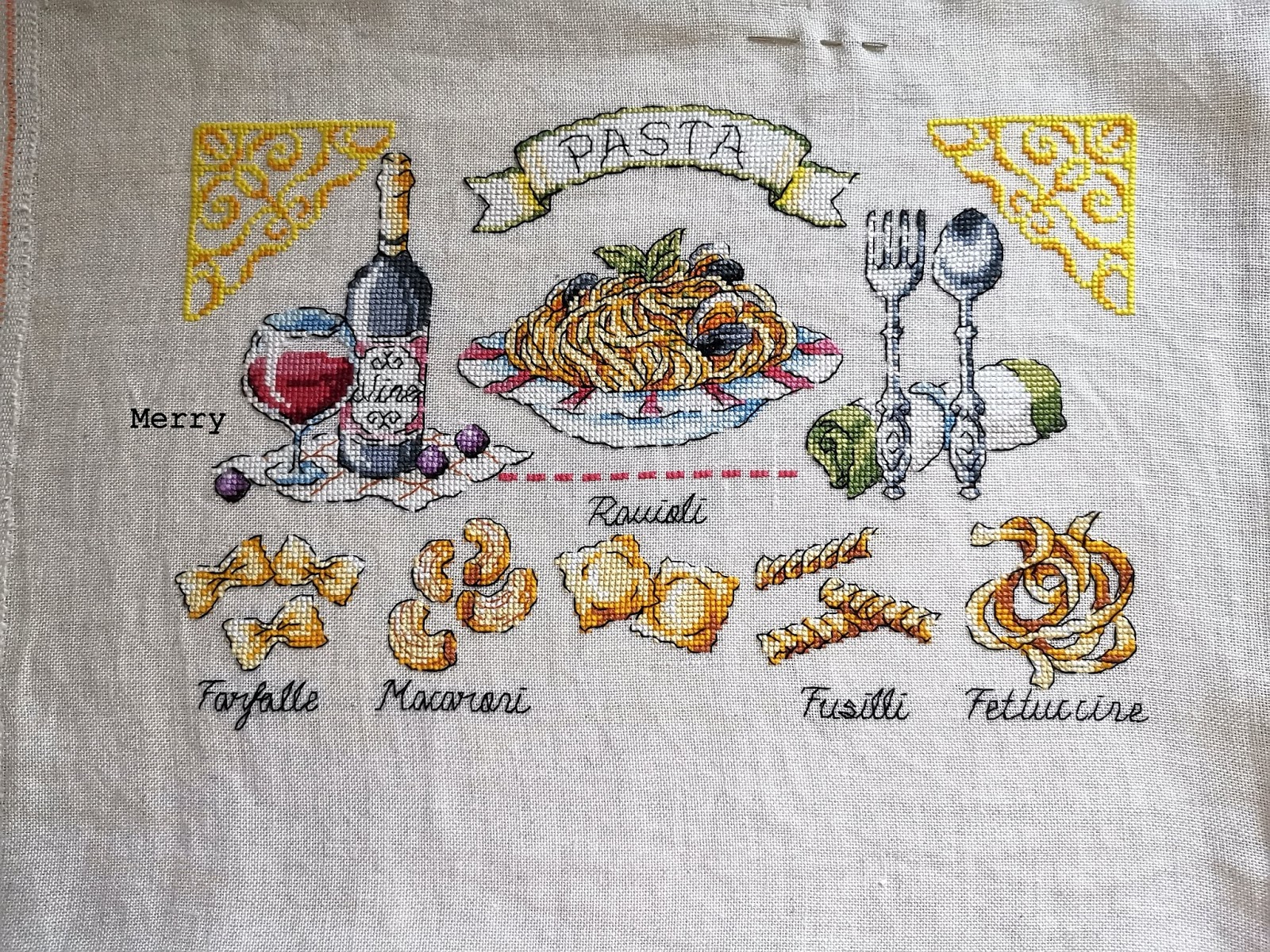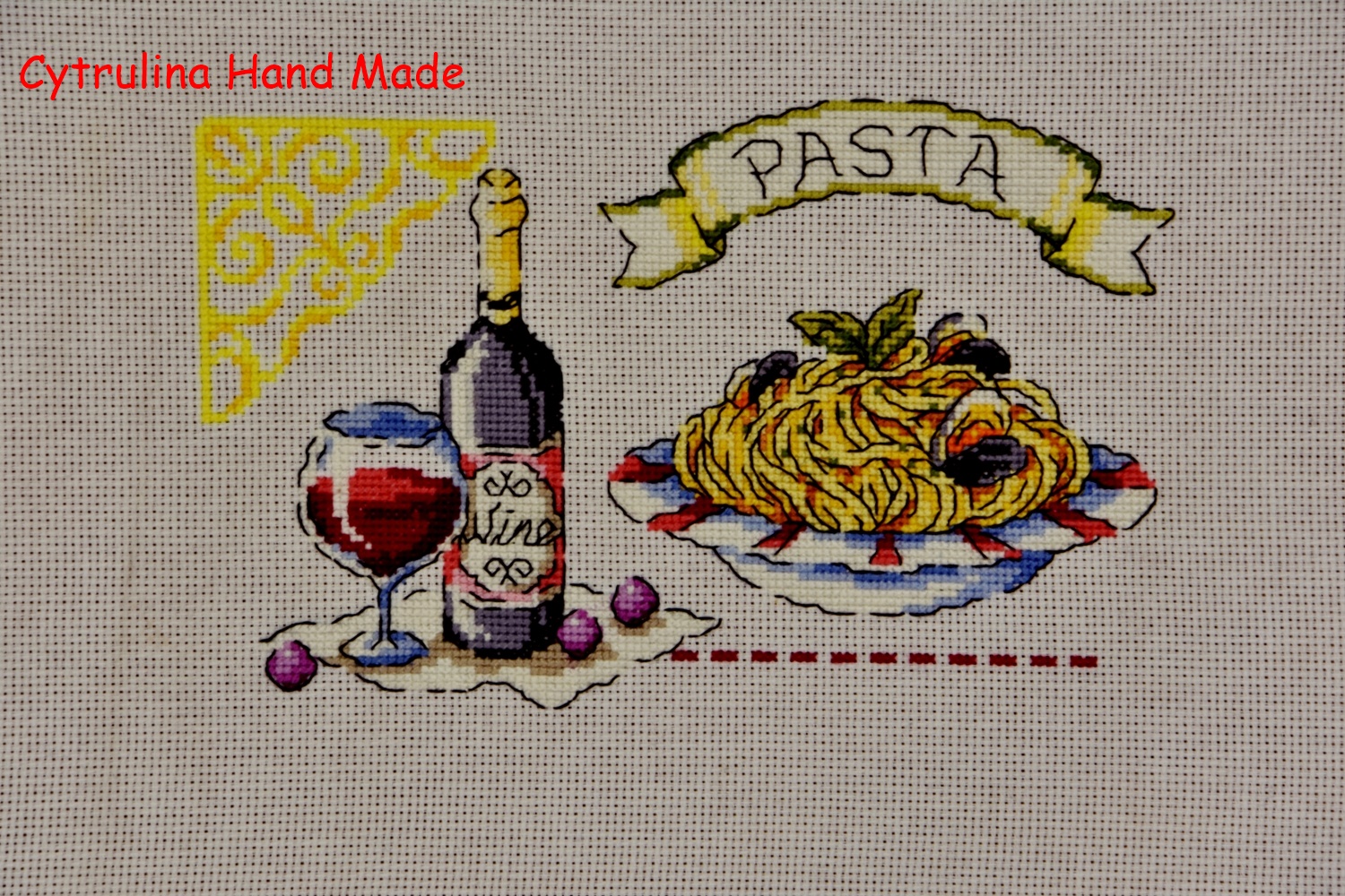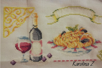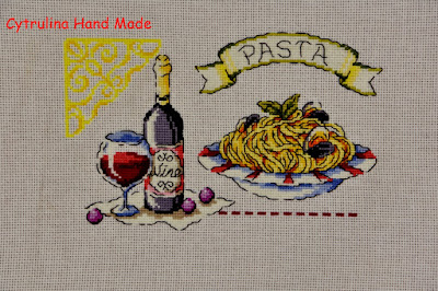 I tak znów jestem 2 dni do tyłu z publikacją, ale mam nadzieję, że mi to wybaczycie.Chwilowo jeszcze gonię w piętkę, ale już widać światełko w tunelu i więcej wolnego czasu.A wolny czas oznacza hafciki, druty a może i koraliki… ogólnie rzecz biorąc czas wolny oznacza rękodzieło!!A teraz czas to Nasze/Wasze rękodzieło pokazać.2. Iwona:3. Joanna – Cross stitch czyli chwile nitkami malowane – dziś pokazuje dwa motywy:4. Edyta – Szafirowy Zakątek:5. Cytrulina – Cytrulina Hand Made:6. Karolina – tym razem bez konturów, bo chwilowo na nie czasu brak:Mój pokażę tym razem na końcu, bo przy okazji chciałam się pożalić….Dziewczyny, zaliczyłam wtopę haftując 5 element SAL-u. W pewnym momencie byłam gotowa rzucić tym haftem w kąt. Powstrzymało mnie to, że po 1 jestem organizatorką tego SAL-u i sama trochę staram się motywować Was do haftowania, a po drugie haft mi się niezmiennie podoba a nie mam czasu na zaczynanie tego od nowa…Tak mi się cudownie i szybko haftowało 5 element samplera, że nie zauważyłam dość znacznej pomyłki. Zorientowałam się dopiero przy końcu, haftując trzonek łyżeczki…Oto mój słoik z sosem pomidorowym:A tak wygląda cały sampler:Widzicie błąd? Trzonek łyżeczki u mnie „wskazuje” na litery „ll” w słowie „Farfalle”, a tymczasem powinien znajdować się w połowie odległości pomiędzy napisami „Farfalle” i „Macaroni”!!!Zaczynając haftować słoik nie spojrzałam, że powinnam opuścić kilka kratek. W wyniku czego mój sampler zaczyna się rozjeżdżać… Teraz żeby jakoś uratować sytuację będę musiała jakoś symetrycznie powiększyć przestrzenie między motywami 5, 6 i 7…Dziękuję dziewczyny za piękne zdjęcia pięknych prac. Jak ktoś nie zdążył dosłać fotki czy wyhaftować motywu to przecież nic się nie stało, mamy czas.Dziękuję wszystkim za komentarze i pozdrawiam serdecznie -