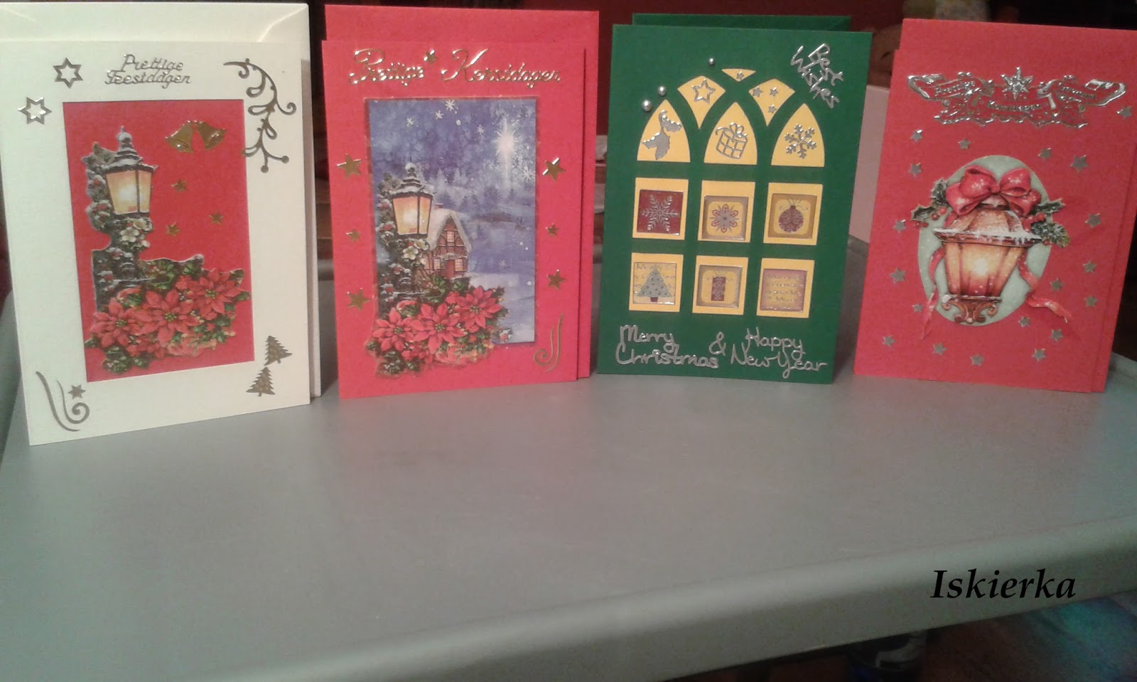 W zeszłym roku napracowałam się troszkę i zrobiłam całe mnóstwo kartek świątecznych. Nie wszystkie zostały wysłane i dlatego postanowiłam, że owszem, dorobię nowych, ale tylko kilka sztuk. Dokładnie sztuk 8, bo tyle mam baz do kartek. Bazy kupiłam właśnie rok temu i jakoś nie miałam na nie pomysłu.