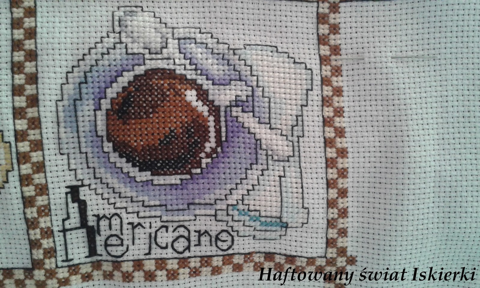 Gapa ze mnie. Haftowałam tym kolorem dość dużo w Lwie i będzie mi też potrzebny do Tygrysa, ale najpierw musiałam dokończyć zaległe kawy:Teraz Americano i Caffe Latte są ukończone i można się nimi chwalić bez przeszkód.