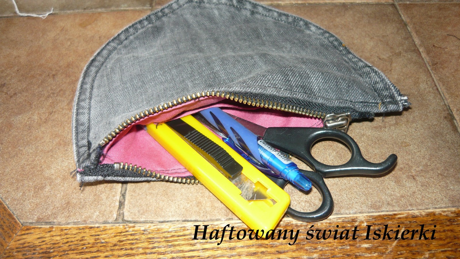 Kosmetyczka tylko z nazwy, bo tak naprawdę noszę w niej „narzędzia” pracy czyli:Niestety nie jestem zadowolona z efektu koncowego. Uważam, że nie do konca mi wyszła, no ale na czymś trzeba testować wszywanie zamków 😉Jak już skonczyłam, czyli około 3.00 w nocy stwierdziłam, że kosmetyczka jest smutna i trzeba ją czymś ozdobić….Przez kilka następnych dni „pracowałam” wieczorami nad ozdobieniem kosmetyczki, a efekt końcowy przedstawia się tak:B jak Beata – pierwszy haft wykonany na przyszytej do materiału rzadkiej kanwie. Niestety widać że krzyzyki nie są idealne, w dodatku jest jeden błąd, ale… nie chce mi się go już poprawiać….Doszlam do wniosku, że po ozdobieniu kosmetyczka zaczęła przypominać szkolną tarczę jaką obowiązkowo nosiło się w mojej szkole. W dodatku środek jest ciut za mały na moje „narzędzia pracy” i choć noszę ją w torebuni to jakoś straciłam do niej serce…Ale cóż – pierwsze koty za płoty 😉Pozdrawiam serdecznie -